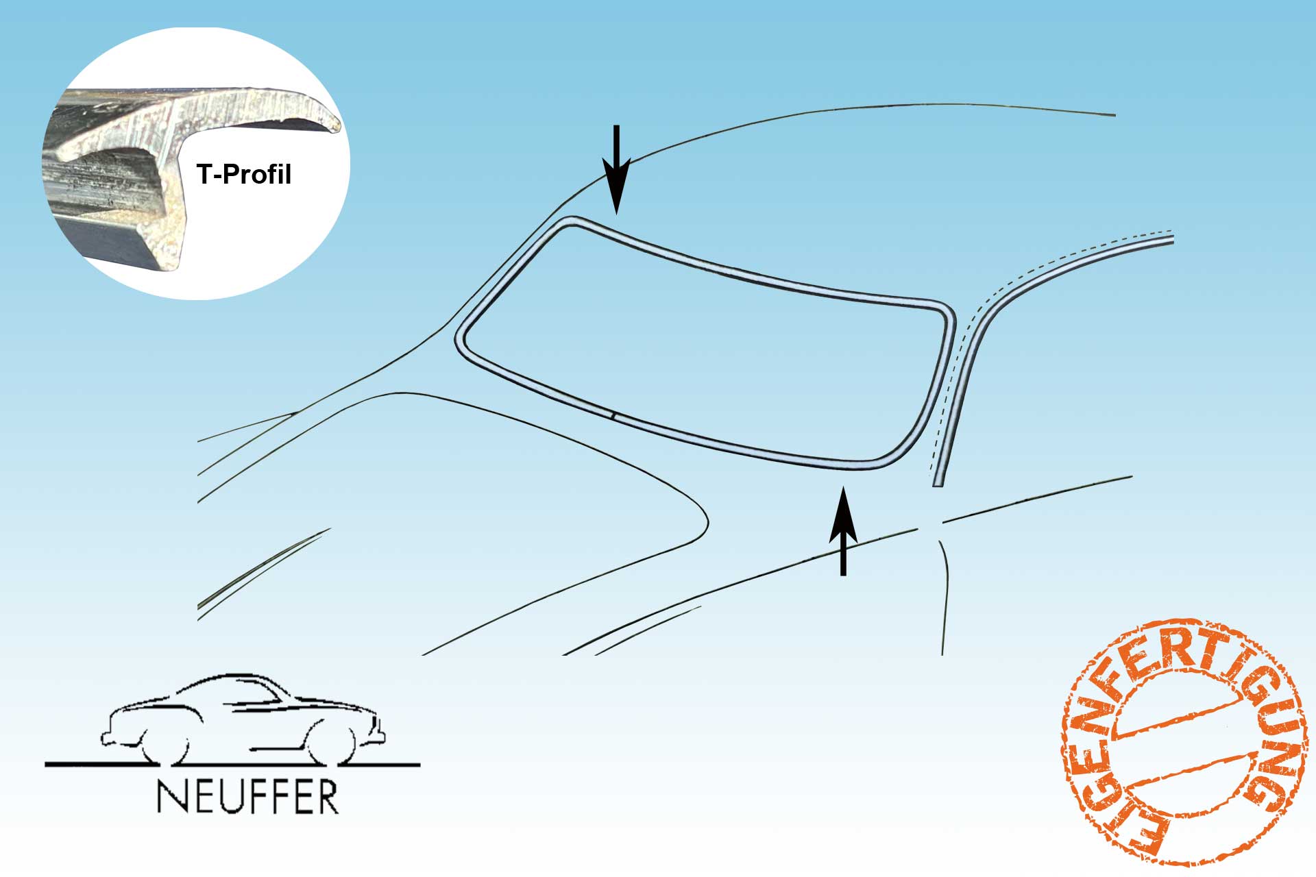 Zierrahmen für die Frontscheibe ab 01/66 - Aluminium ( sog. T - Profil )